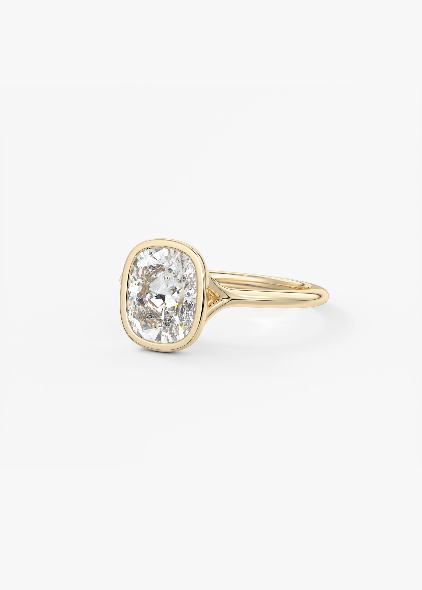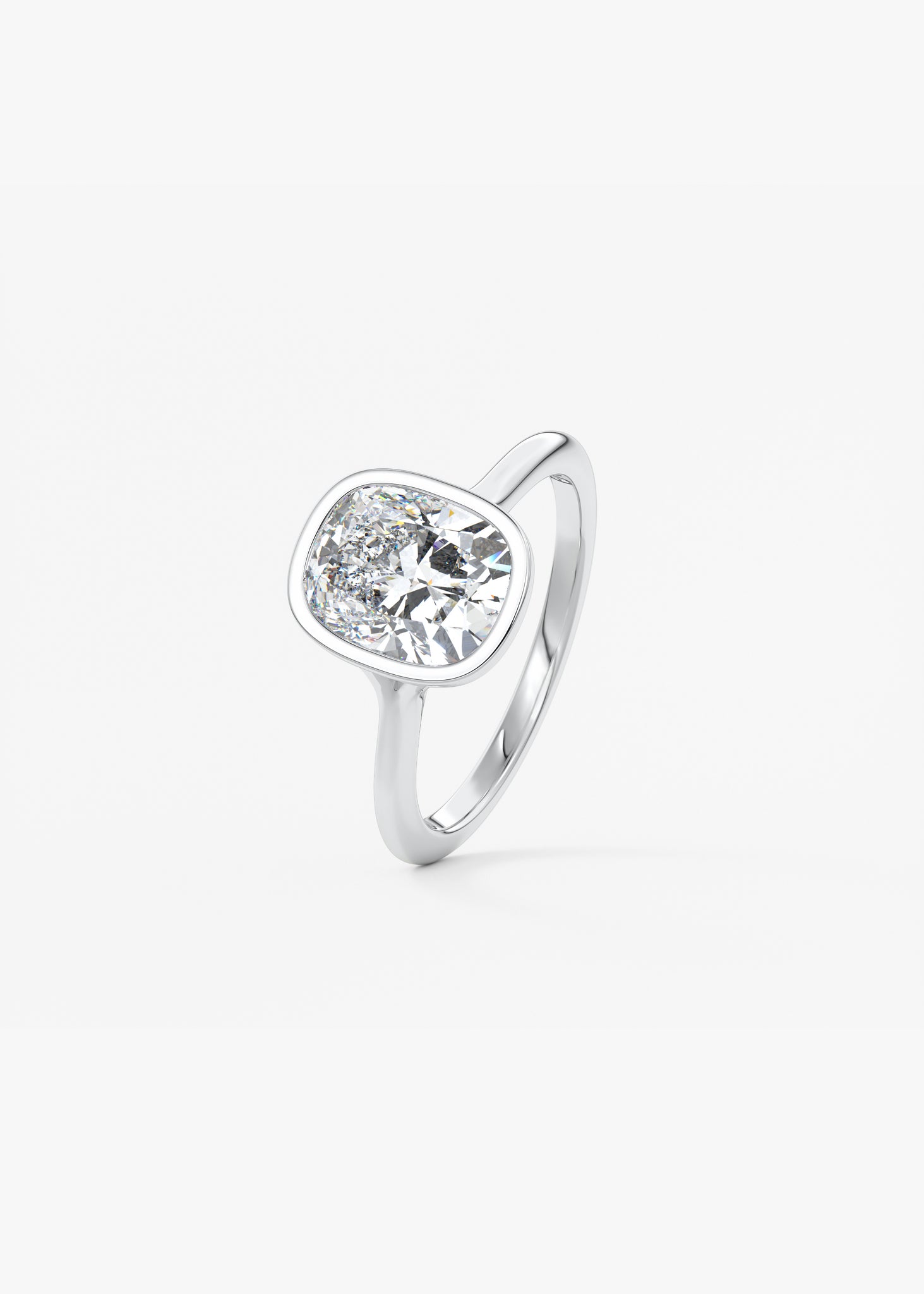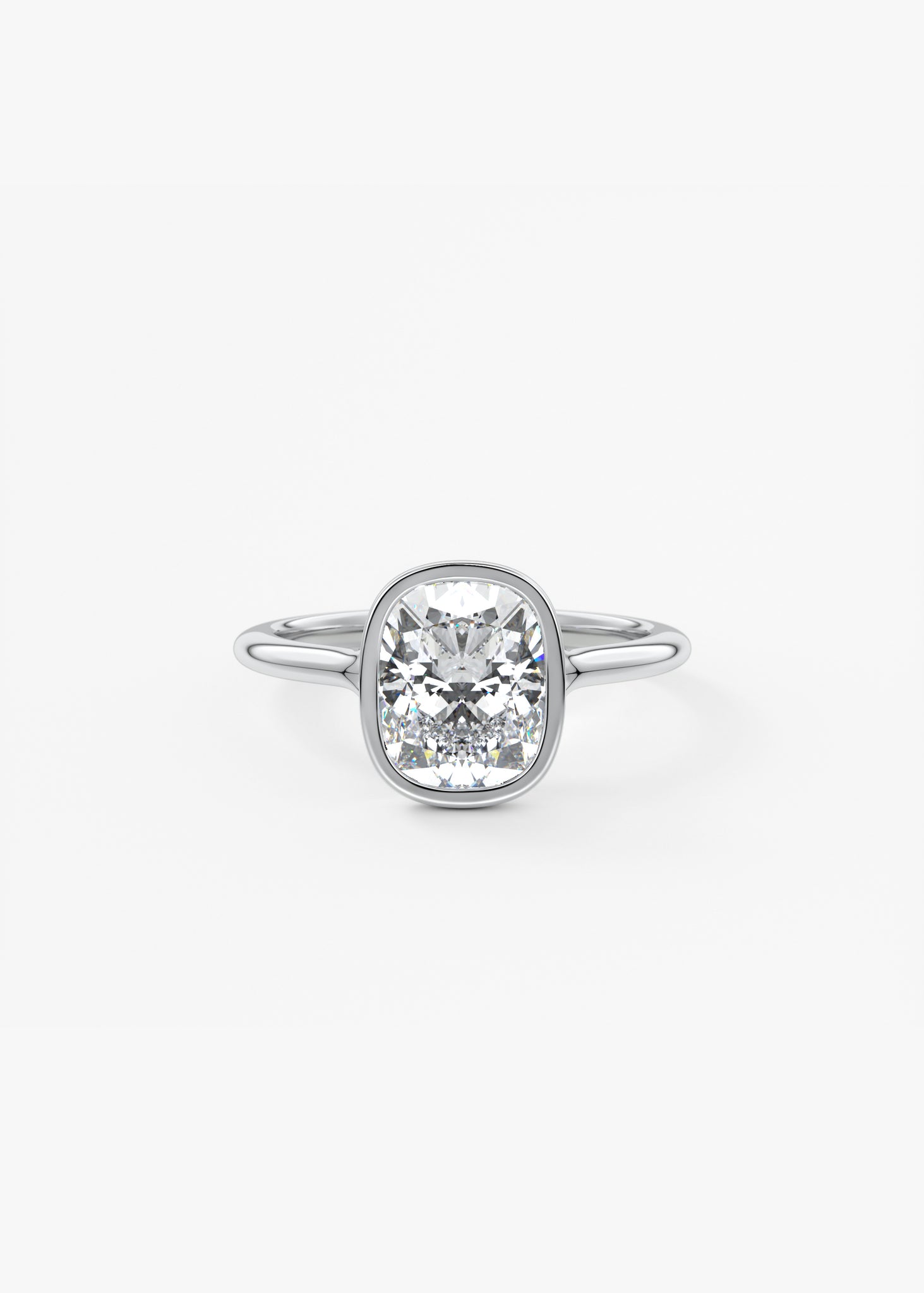Modern Elongated Cushion Cut Bezel Set Engagement Ring