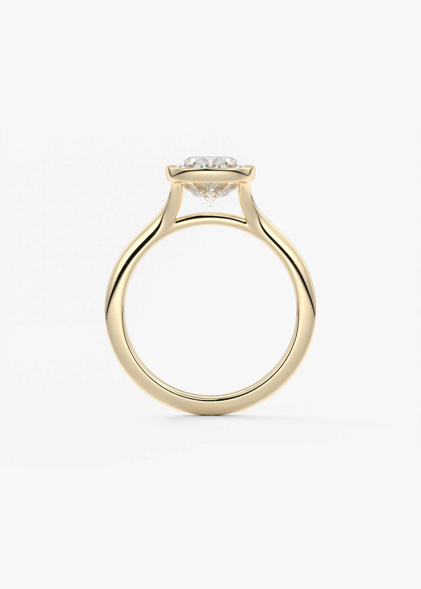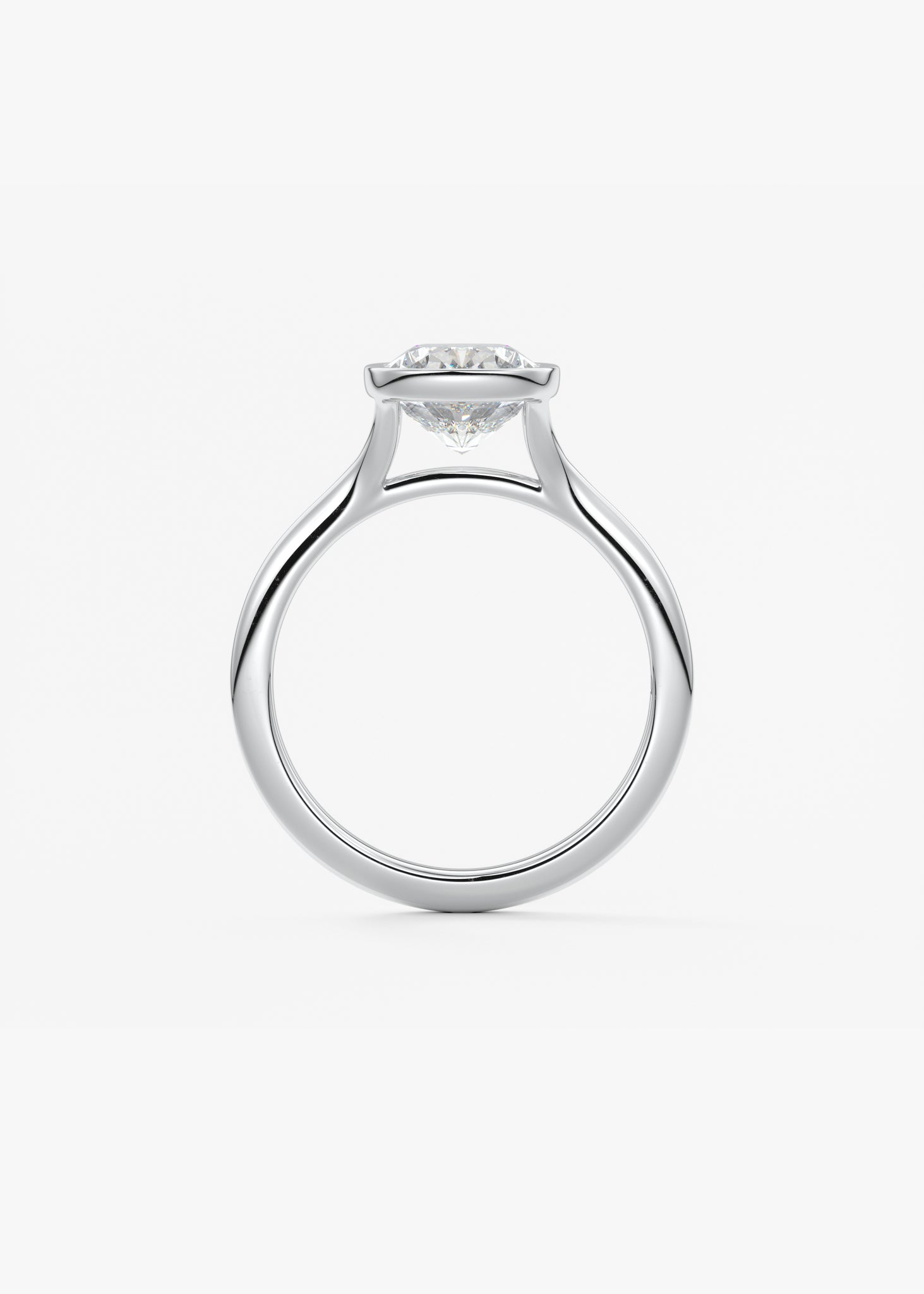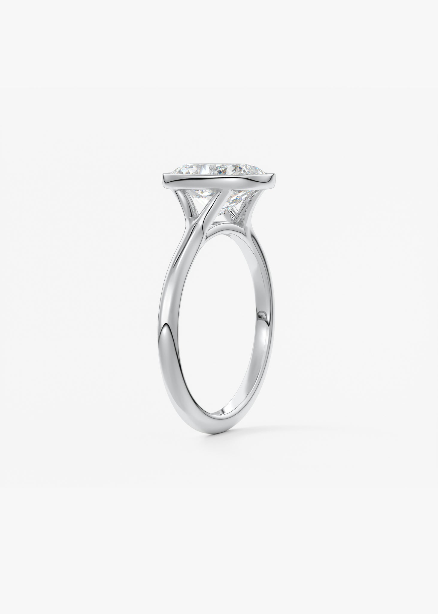 Modern Elongated Cushion Cut Bezel Set Engagement Ring