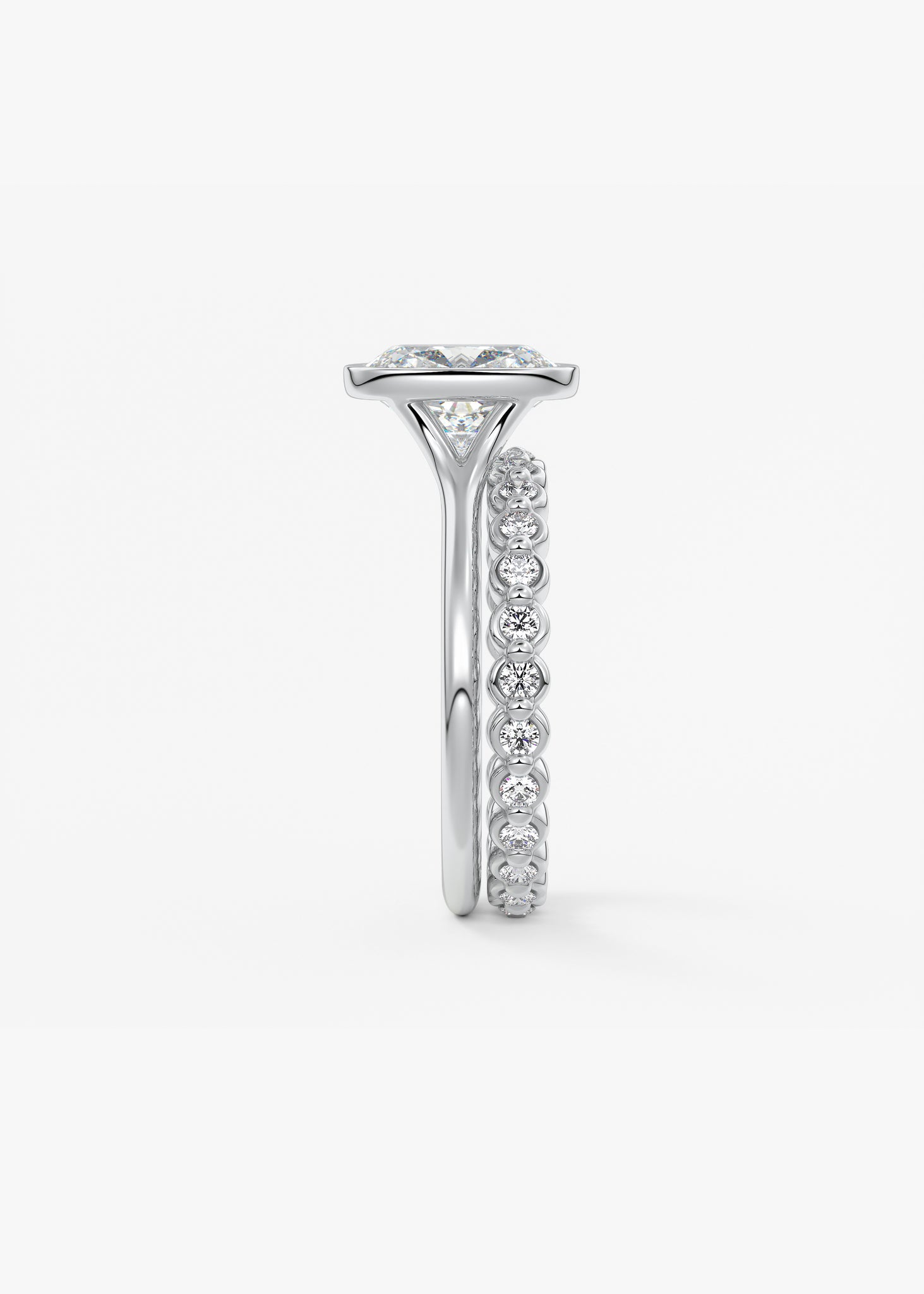 Meet The Breezy Bezel—a fresh take on timeless. This elongated cushion cut engagement ring features a sleek, barely-there bezel that floats off the finger. Split cathedral shoulders add structure without bulk, while the open, airy design keeps things light, low-profile, and easy to stack. Inspired by Art Deco lines, reimagined for modern love—and built to stand the test of it.